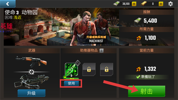 1、在任務準備界面,選擇武器和助推器物品,點擊【使用】裝備,確認力量值滿足任務要求后,點擊【射擊】開始任務。