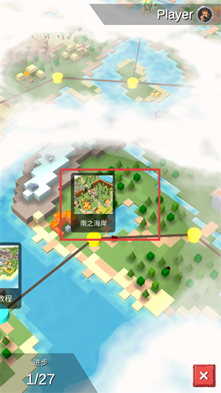 1、地圖界面紅框標(biāo)注【南之海岸】關(guān)卡,進(jìn)度顯示【進(jìn)步-1/27】,選中該關(guān)卡進(jìn)入詳情頁解鎖戰(zhàn)斗環(huán)節(jié)。