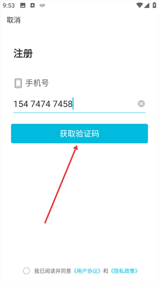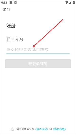 2、進(jìn)入注冊(cè)頁面,在輸入框中輸入手機(jī)號(hào)。