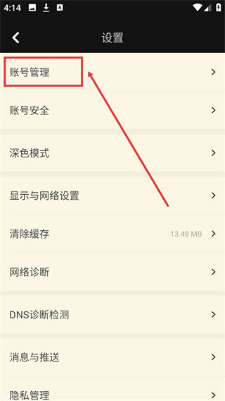 3、在【設置】頁面,選擇【賬號管理】選項并點擊,進入賬號管理的賬號操作界面。