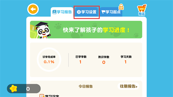 3、進入【學(xué)習(xí)報告】頁面,點擊【學(xué)習(xí)設(shè)置】,進入相關(guān)頁面。