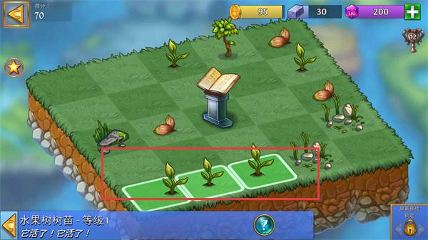 3、找到場地內的果苗元素,將其移動至綠色區域內完成對應的布局操作。