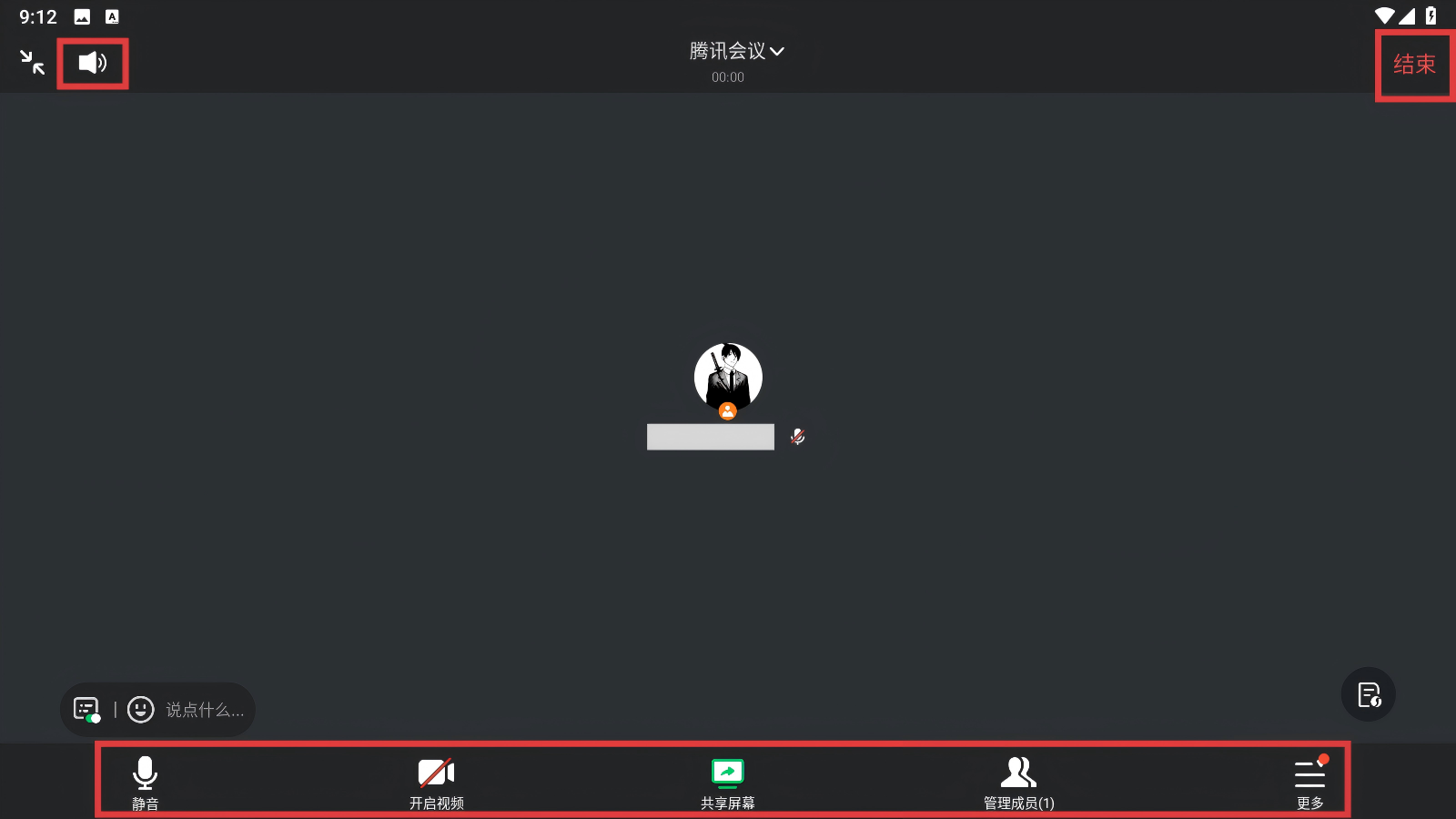 4、進(jìn)入會(huì)議后,可以用底部的【靜音】、【共享屏幕】等功能,要是會(huì)議結(jié)束了,就點(diǎn)擊右上角的【結(jié)束】按鈕退出會(huì)議。