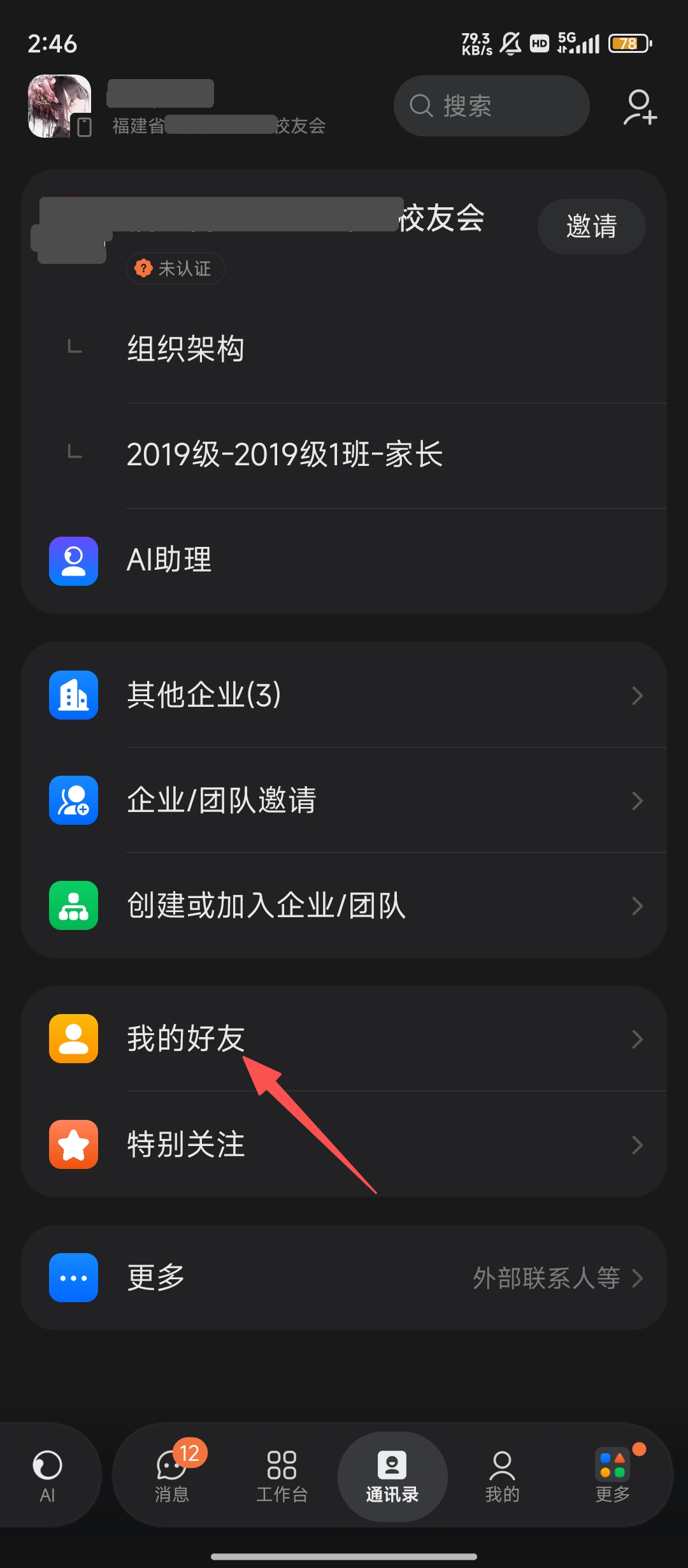 2、在通訊錄頁(yè)面里,找到并點(diǎn)擊【我的好友】吧。
