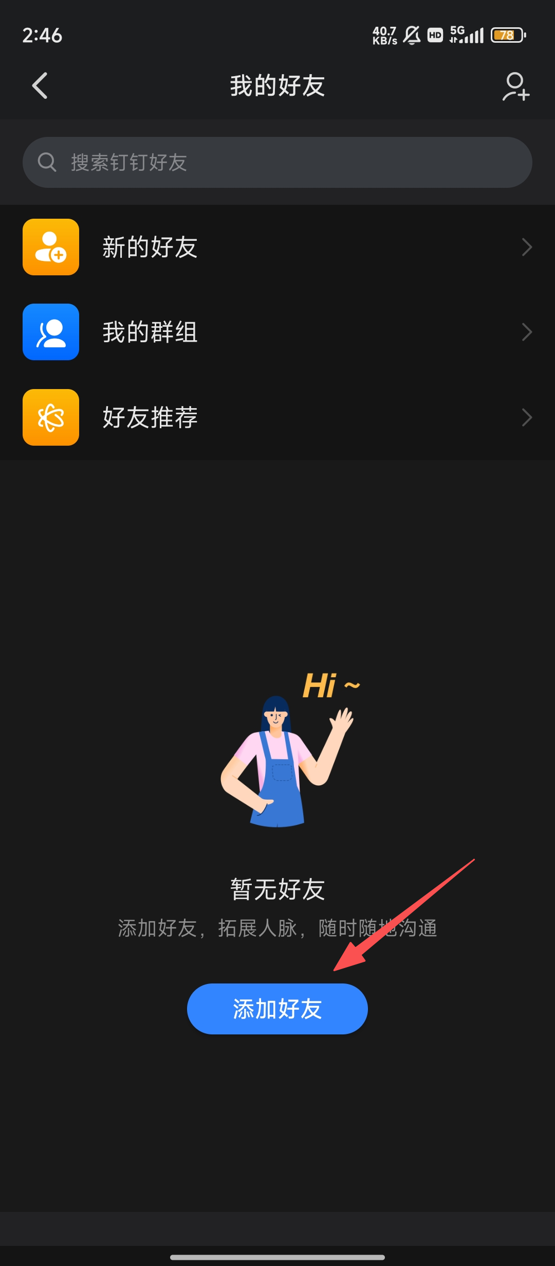 3、進(jìn)入我的好友頁(yè)面后,點(diǎn)擊醒目的【添加好友】按鈕呀。