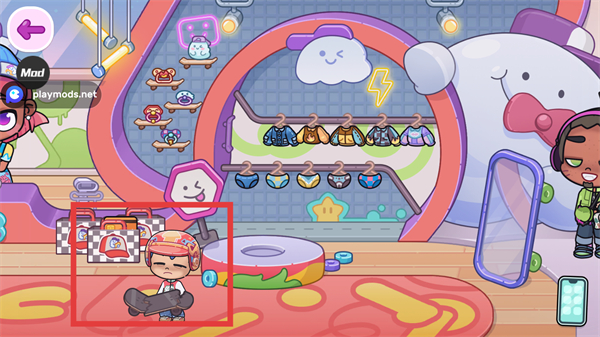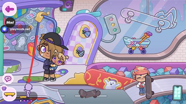 1、進(jìn)入體育運(yùn)功館,點(diǎn)擊攜帶滑板的角色,拖動到滑板區(qū)。