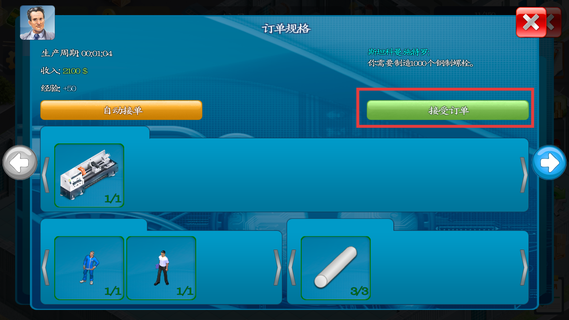 3、玩家資金不是很充足的時候,要注重企業的發展,多購買車床等設配,招聘更多的員工,給員工更好的福利,這樣才是讓你能夠發展下去的基礎
