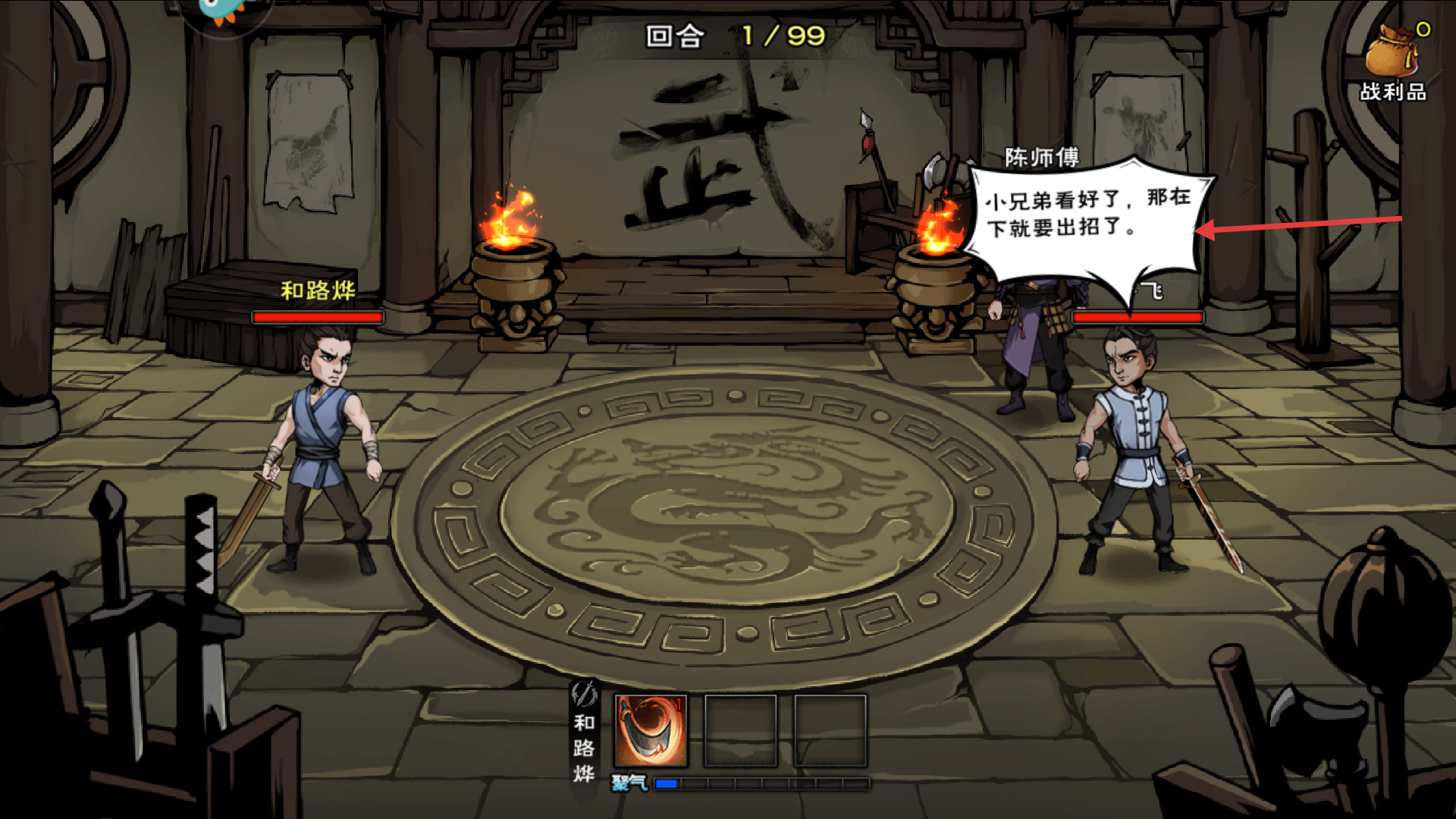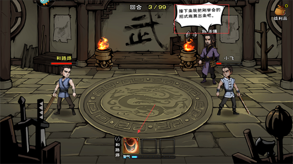 2、當(dāng)回合推進(jìn)到合適階段,按照指引點(diǎn)擊對(duì)應(yīng)技能,將剛學(xué)會(huì)的招式精準(zhǔn)施展出以壓制對(duì)手。