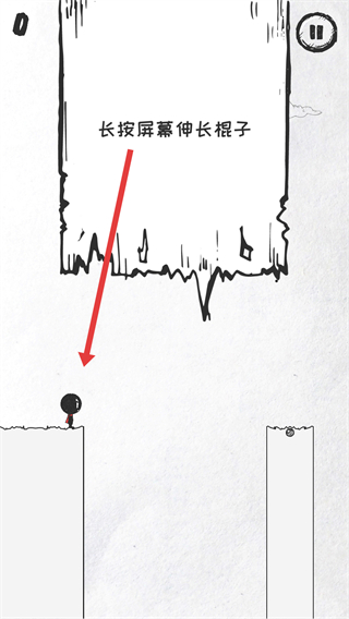 2、進(jìn)入關(guān)卡后觀察屏幕提示,長(zhǎng)按屏幕區(qū)域控制棍子伸長(zhǎng)至合適長(zhǎng)度。
