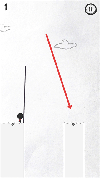 4、掉落懸崖即關(guān)卡結(jié)束,點(diǎn)擊中間的重玩按鈕可再次挑戰(zhàn)。