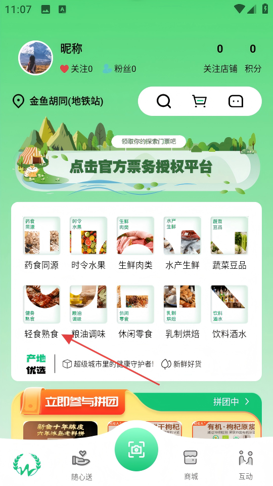 2、進(jìn)入主界面后,點(diǎn)擊【輕食熟食】分類,進(jìn)入商品列表頁面。