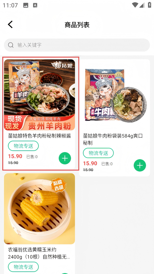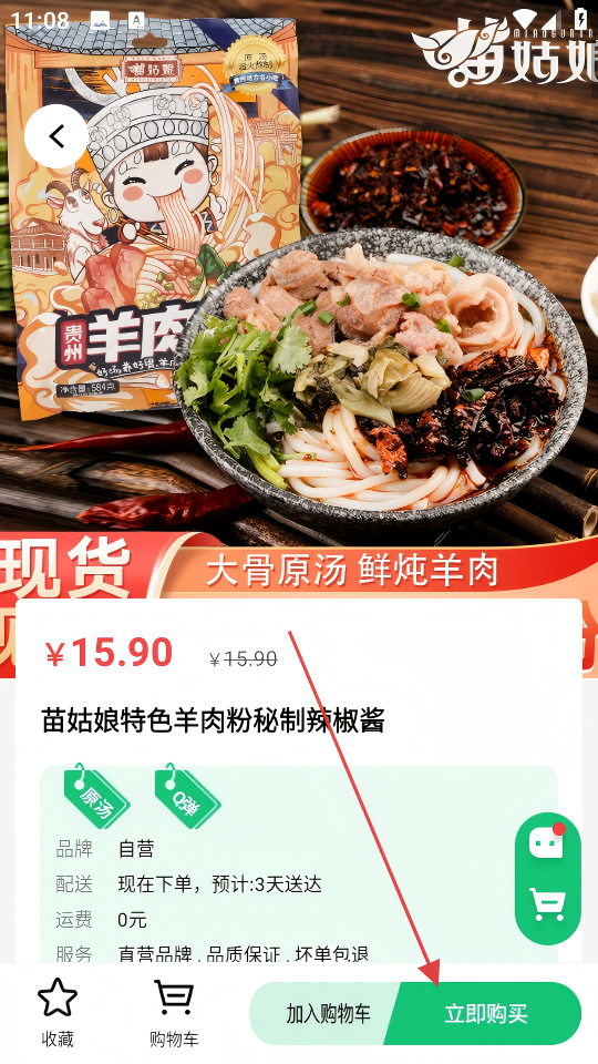 3、在商品列表中,選擇【苗姑娘特色羊肉粉秘制辣椒醬】,進(jìn)入該商品詳情頁。