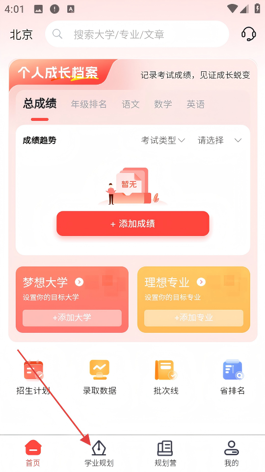 1、點擊【學業規劃】,進入學業規劃頁面。