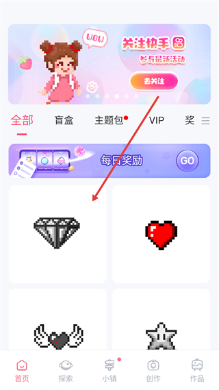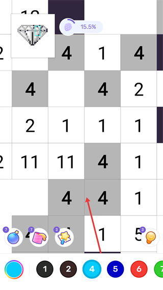 3、沿【紅色箭頭】填充數字4的格子,切換對應色塊完善鉆石主體結構。