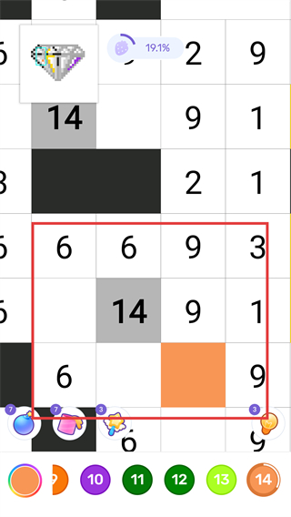 4、選中【14號】色塊,填充【紅色框】內數字14的格子,細化鉆石細節部分。