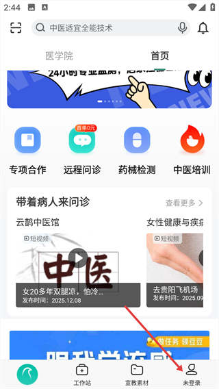 1、在首頁底部點擊【未登錄】按鈕,進入賬號登錄界面。