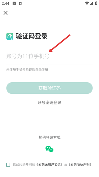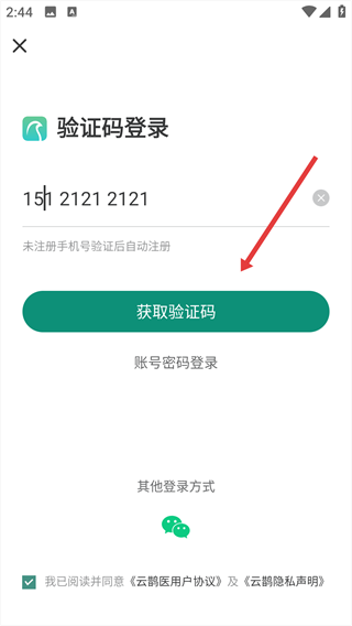 3、填寫手機號后,點擊【獲取驗證碼】按鈕。