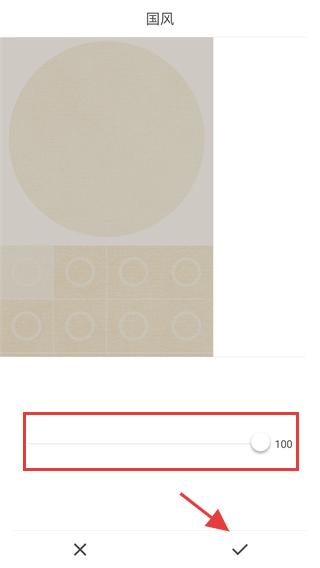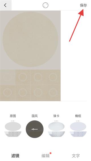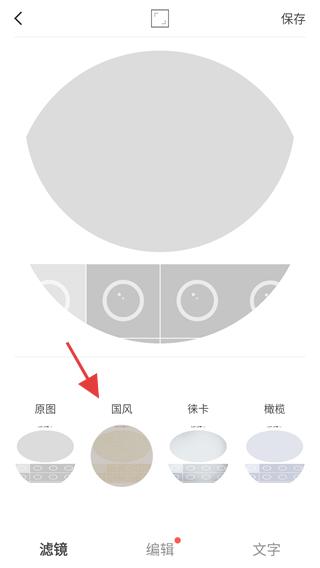 2、進入編輯頁,點擊【國風】濾鏡選項,應用該風格濾鏡效果。