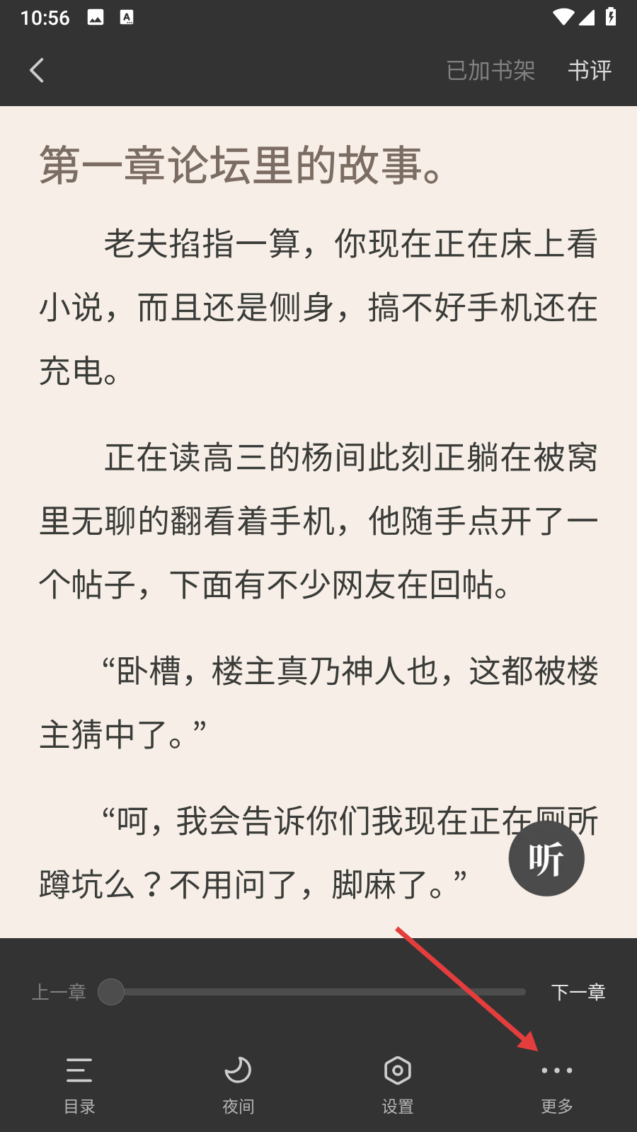 2、點(diǎn)擊閱讀頁底部【更多】。