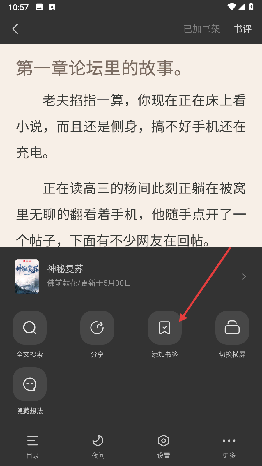 3、選擇【添加書簽】保存閱讀進(jìn)度。