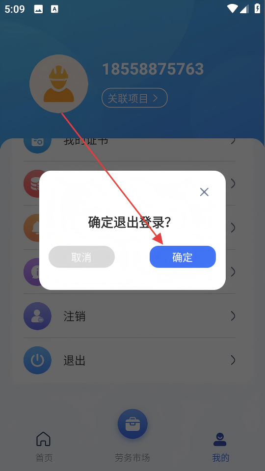 4、在彈窗中,點擊【確定】按鈕,完成賬號退出登錄操作。