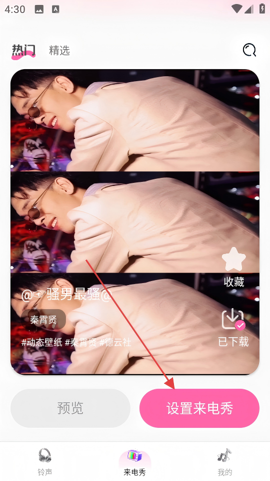 2、在首頁點擊底部【來電秀】,進入來電秀頁面。