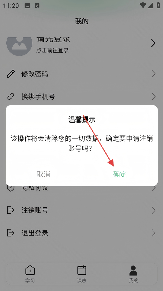 4、在溫馨提示框中點擊【確定】,完成賬號注銷操作。