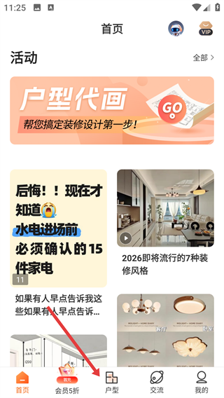 1、我們打開知戶型后,點擊底部【戶型】按鈕,即可進入戶型設計界面啦。