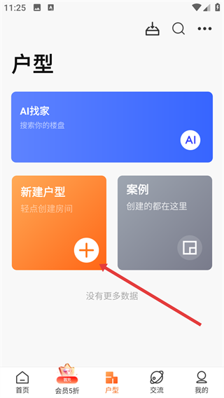 2、在戶型界面,點擊【新建戶型】的加號,就能開始創建屬于自己的戶型哦。