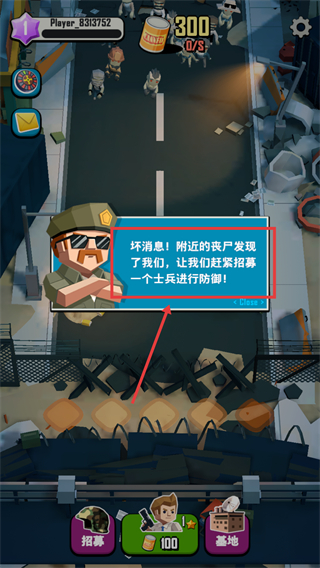 2、附近喪尸發(fā)現(xiàn)我們時(shí),需及時(shí)招募士兵進(jìn)行防御,避免據(jù)點(diǎn)被突破影響后續(xù)生存與發(fā)展。