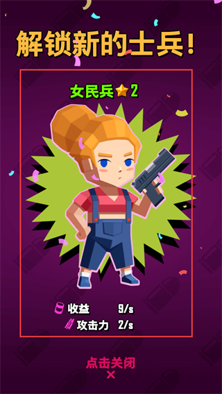 4、解鎖新的女民兵后,能提升每秒收益和攻擊力,有效增強(qiáng)隊(duì)伍的持續(xù)作戰(zhàn)與生存能力。