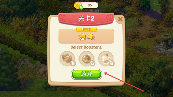 1、點擊綠色【游戲】按鈕,進入關(guān)卡的核心操作鍵。