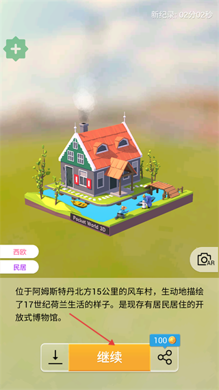 2、模型拼接完成后點擊【繼續】按鈕,可查看模型介紹,同時獲得【100】獎勵,推進游戲進程。