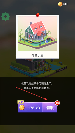 3、完成關卡后領取【金幣】獎勵,金幣可用于兌換超值套餐,首次完成關卡還能額外獲取金幣。