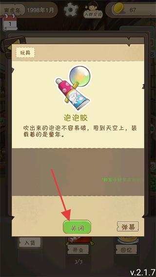 3、解鎖貨品后會彈出介紹彈窗,點擊“關閉”按鈕返回主界面,新貨品會提升店鋪的客人收益。