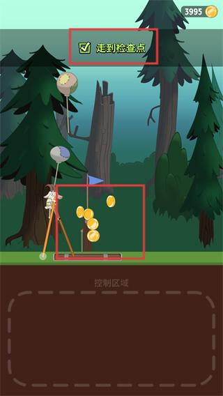 2、成功移動至檢查點,完成【走到-檢查點】任務(顯示對勾),同時收集沿途金幣,當前金幣數累積至【3995】。