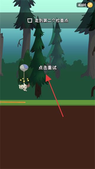 4、若操作失誤,可點擊【點擊-重試】重新開始當前關卡,再次嘗試向【第二個-檢查點】推進完成任務。