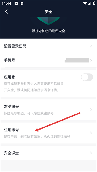 2、在安全頁面中,找到【注銷賬號】選項(xiàng)并點(diǎn)擊,就能進(jìn)入注銷流程的說明界面哦。