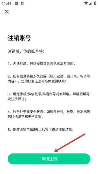 3、仔細(xì)閱讀注銷說明后,點(diǎn)擊【申請注銷】按鈕,即可進(jìn)入驗(yàn)證碼驗(yàn)證環(huán)節(jié)呢。