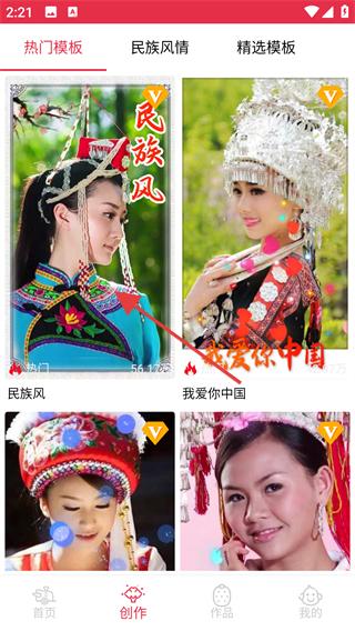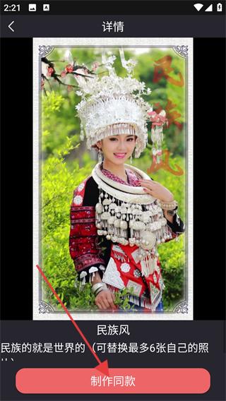 2、在模板頁選擇目標模板(如民族風情類),點擊進入該模板的詳情頁面。