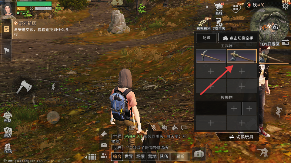 1、在裝備配置界面,選擇【斧頭】作為武器。