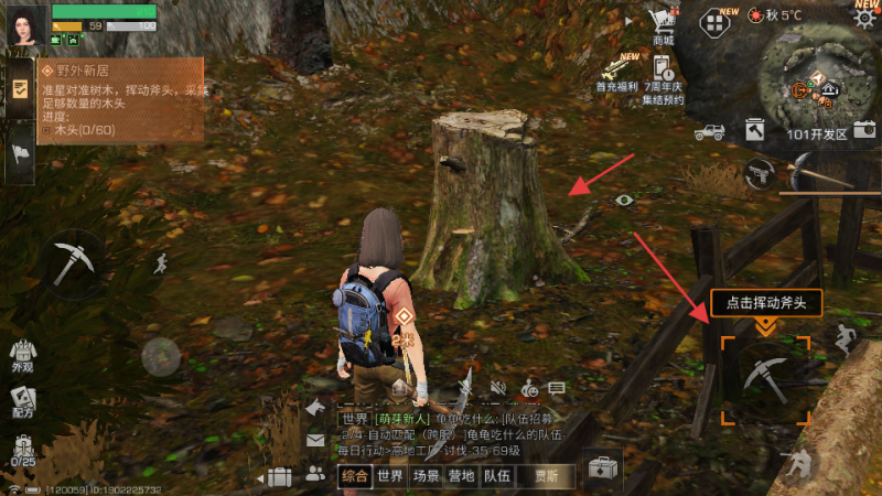 2、對準樹木,揮動斧頭,采集足夠數量的木頭。
