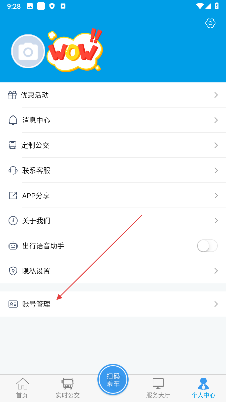 2、在個人中心頁面,點擊【賬號管理】,進入個人設置頁面。