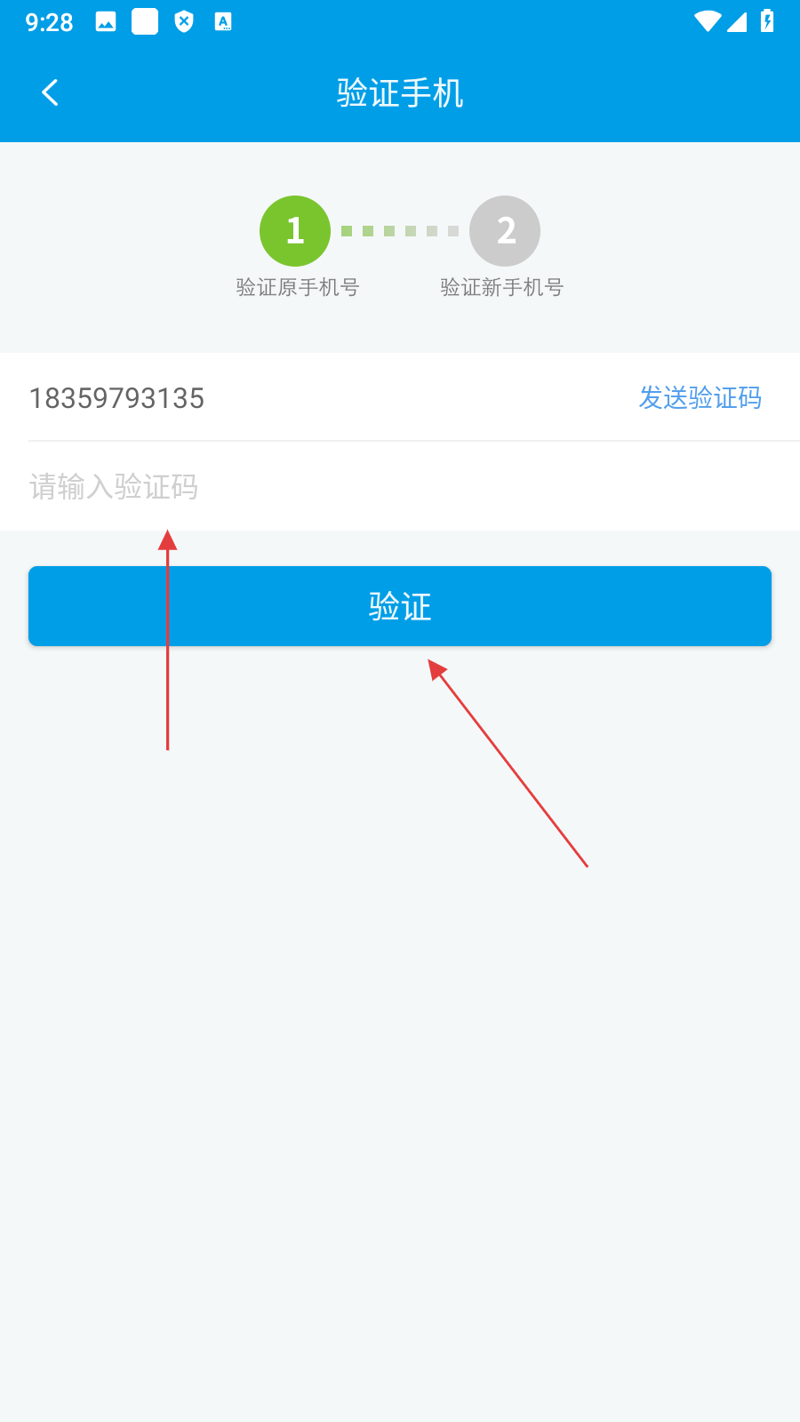 4、在驗證手機頁面【輸入驗證碼】后點擊【驗證】,完成手機換綁操作。