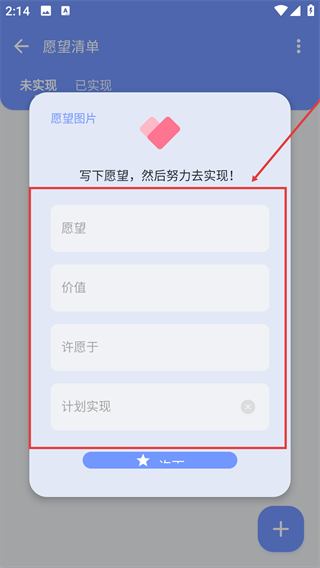 3、在愿望清單頁面,點擊右下角的加號按鈕,彈出添加新愿望的信息填寫表單。