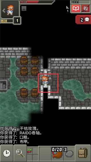 2、地牢場景紅框標(biāo)角色,獲得【干枯玫瑰】【RAIDO卷軸】【口糧】【布甲】可繼續(xù)探索。