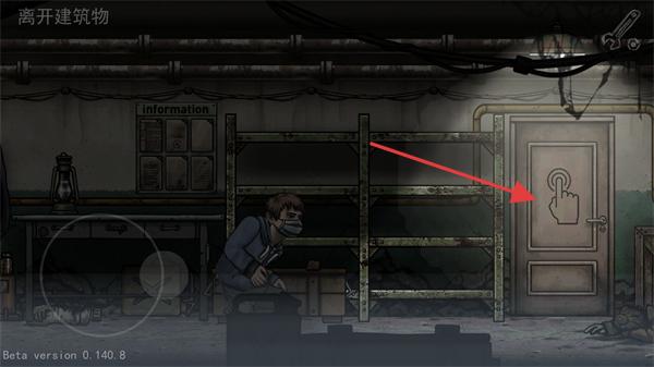 1、在“離開建筑物”場景中,操控角色移動到右側的門旁,點擊門觸發交互,準備開啟出口。