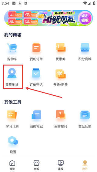 2、在個人中心頁面,找到【我的商城】板塊下的【收貨地址】選項,點擊該選項進入地址管理頁面。