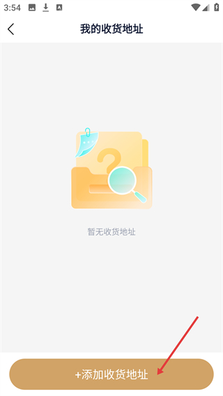 3、進入地址管理頁面后,若顯示【暫無收貨地址】,點擊頁面底部的【添加收貨地址】按鈕,進入新建地址頁面。