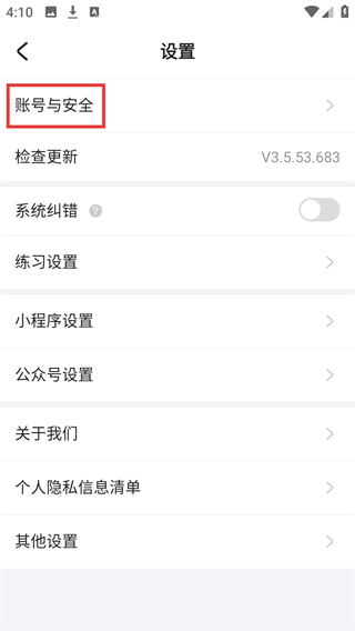 3、進(jìn)入【設(shè)置】頁面后,找到【賬號與安全】選項并點擊,進(jìn)入對應(yīng)的賬號安全相關(guān)設(shè)置界面。